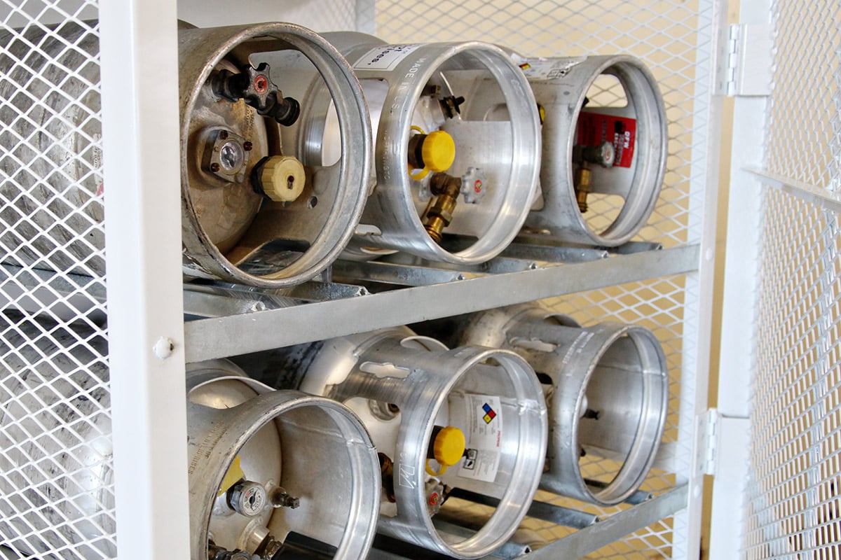 Our gas cylinder cages protect LPG and oxygen gas bottles from theft and unauthorized access. Built with heavy-duty 11-gauge steel mesh, they offer both visibility and security. Our propane cages meet all safety requirements and are suitable for heavy industrial use. Improve your facility’s safety with our propane tank cages, propane storage cages, and LPG cylinder cages. Contact us for a quote on cylinder cages and secure storage solutions.