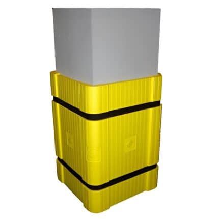 The Park Sentry Pro Corner System in black is engineered to protect structural columns in high-traffic environments with durable, high-performance materials. Each corner unit stands 39″ tall and is made from 2.2″ thick (55mm) patented ARPRO material—a scratch-resistant polymer designed to absorb impact while preserving vehicle finishes.